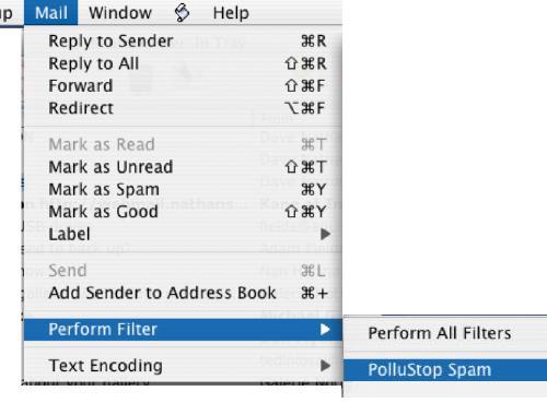 PolluStop will always add a header to all messages it processes, and this header can be used to sort mail in a separate folder. When setup for POP users, PolluStop can also (optionally) tag subject of spam messages with [SPAM]. Desktop e-mail clients should be configured to sort these messages into a separate folder. Some clients are able to process the PolluStop header, some others will have to use the [SPAM] tag.